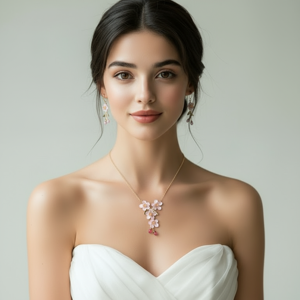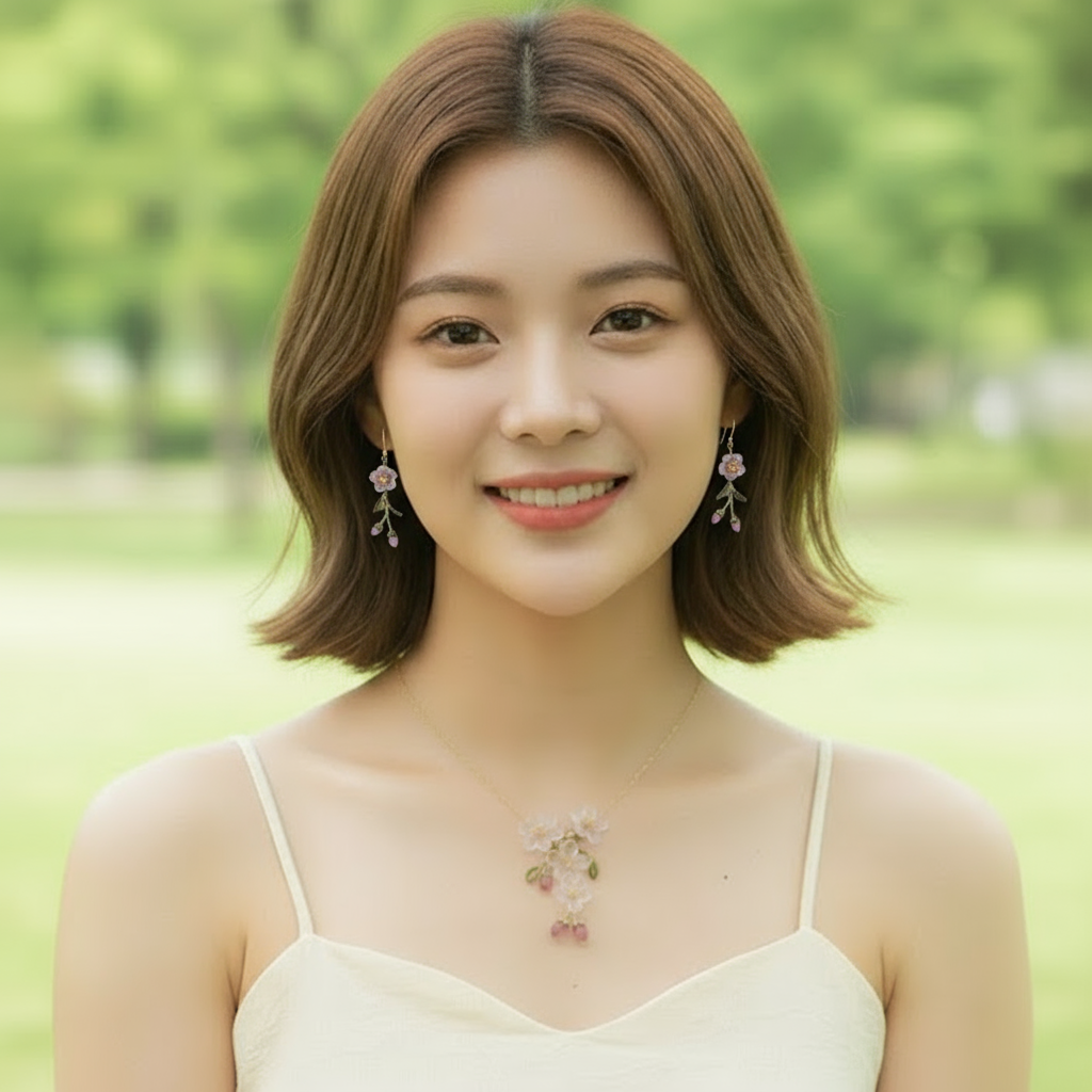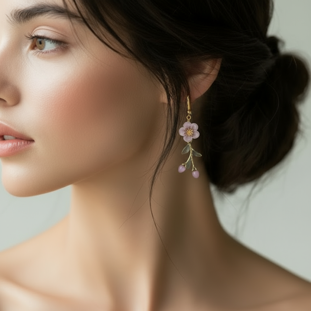桃花耳環 Peach Blossom Earrings - Dainty Flower Drop Wire