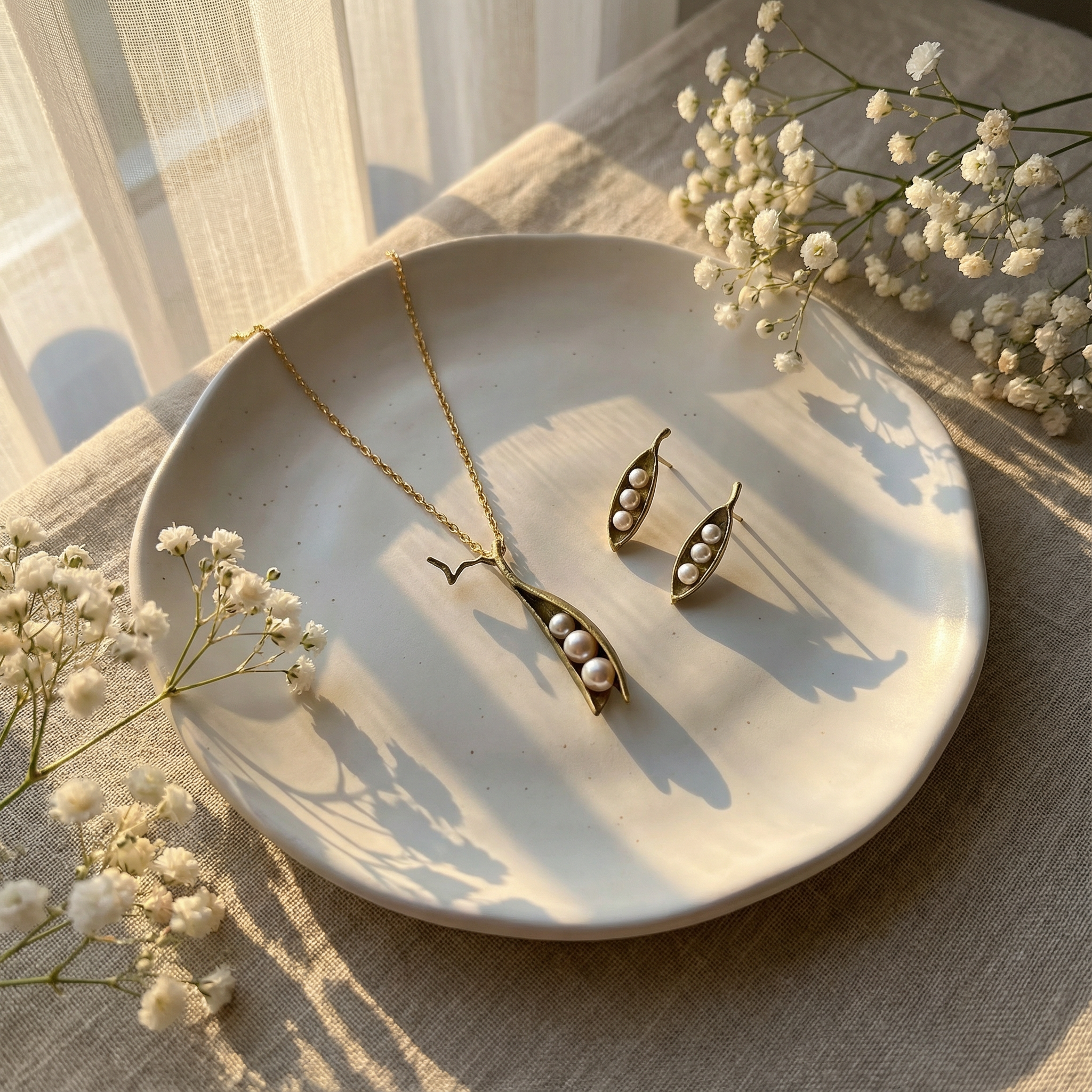 「豌豆莢」在西方文化中象徵著「多子多福」、「豐收」與「家庭和諧」;三顆珍珠緊緊相依,更寓意著親密無間的關係,無論是家人、摯友還是伴侶 。佩戴這款耳環,就像是隨身攜帶了一份關於愛與連結的溫暖提醒。​