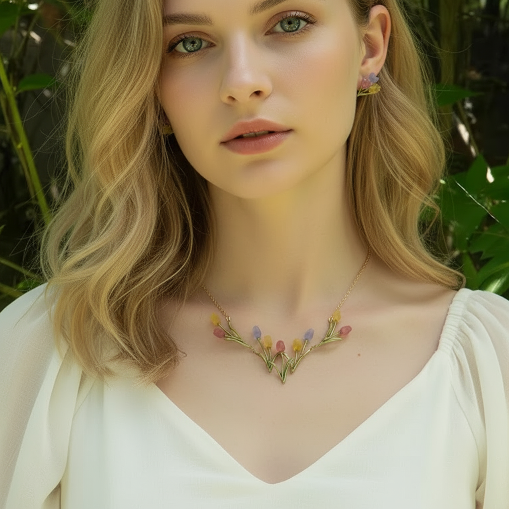 精心設計的鬱金香系列,完美融合了大自然的優雅與專業工藝。這款鬱金香項鍊採用手工古銅打磨工藝,搭配精緻的黃、粉、紫色鑄造玻璃花朵,細膩地捕捉了鬱金香花朵的迷人風采。 鬱金香因其悠久的歷史和象徵意義而備受世人喜愛。起源於中亞地區,這種花卉以其鮮艷的色彩和優雅的輪廓俘獲了全世界人的心。我們的鬱金香系列致敬了這種迷人的花卉,在每一件精心打造的作品中都體現了大自然的精髓。 這款鬱金香項鍊完美地捕捉了盛開鬱金香花瓣的優雅曲線,散發著璀璨迷人的光澤,為佩戴者增添了一抹優雅氣質。讓我們一起擁抱鬱金香的永恆之美,欣賞每一處精心打造的細節。 -手工青銅鑄造 -人手鑄造玻璃花 -配可調式項鍊 18-20 吋 -美國手工製造