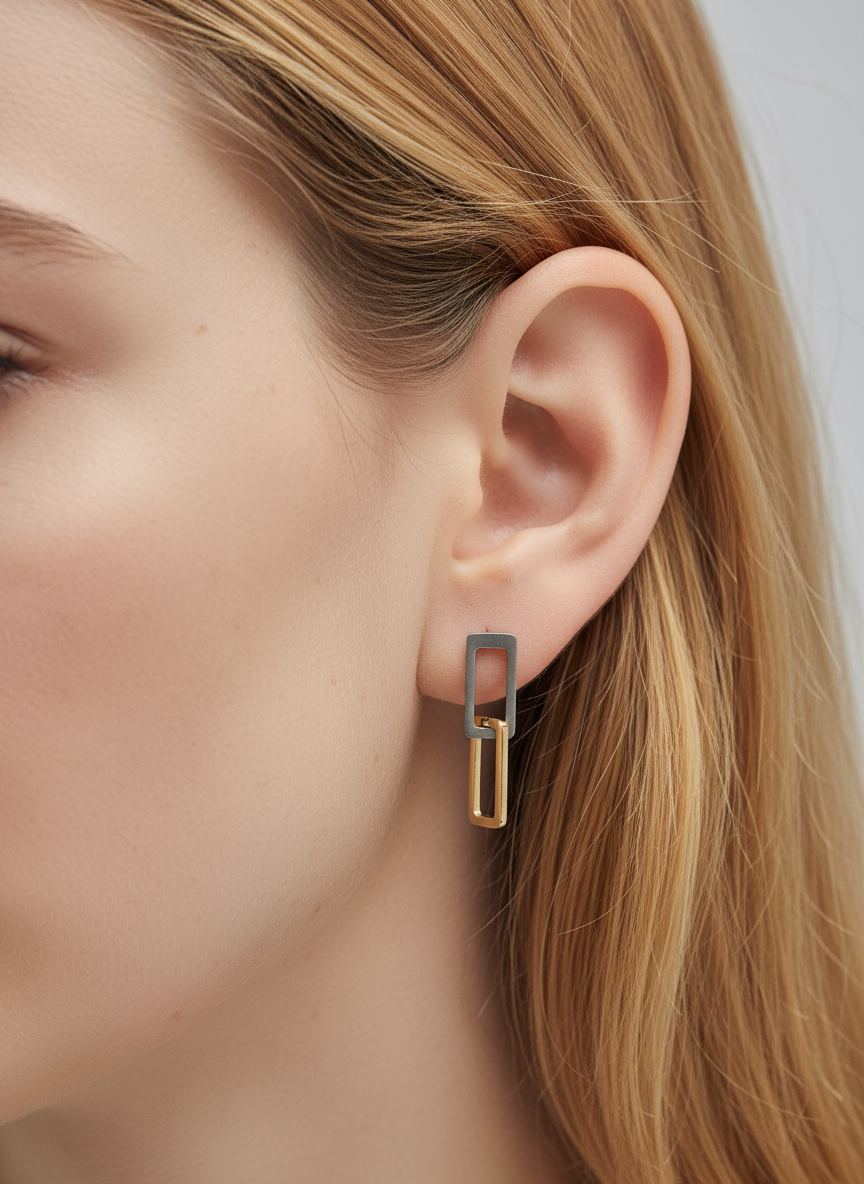 Boccia Titanium 05106-02 耳環靈感來自「都市節奏與個人風格的交錯」。銀色象徵冷靜與理性,金色代表熱情與光芒,兩者交織如同香港女性在生活中展現的多面魅力 —— 在職場中果斷,在生活中溫柔。