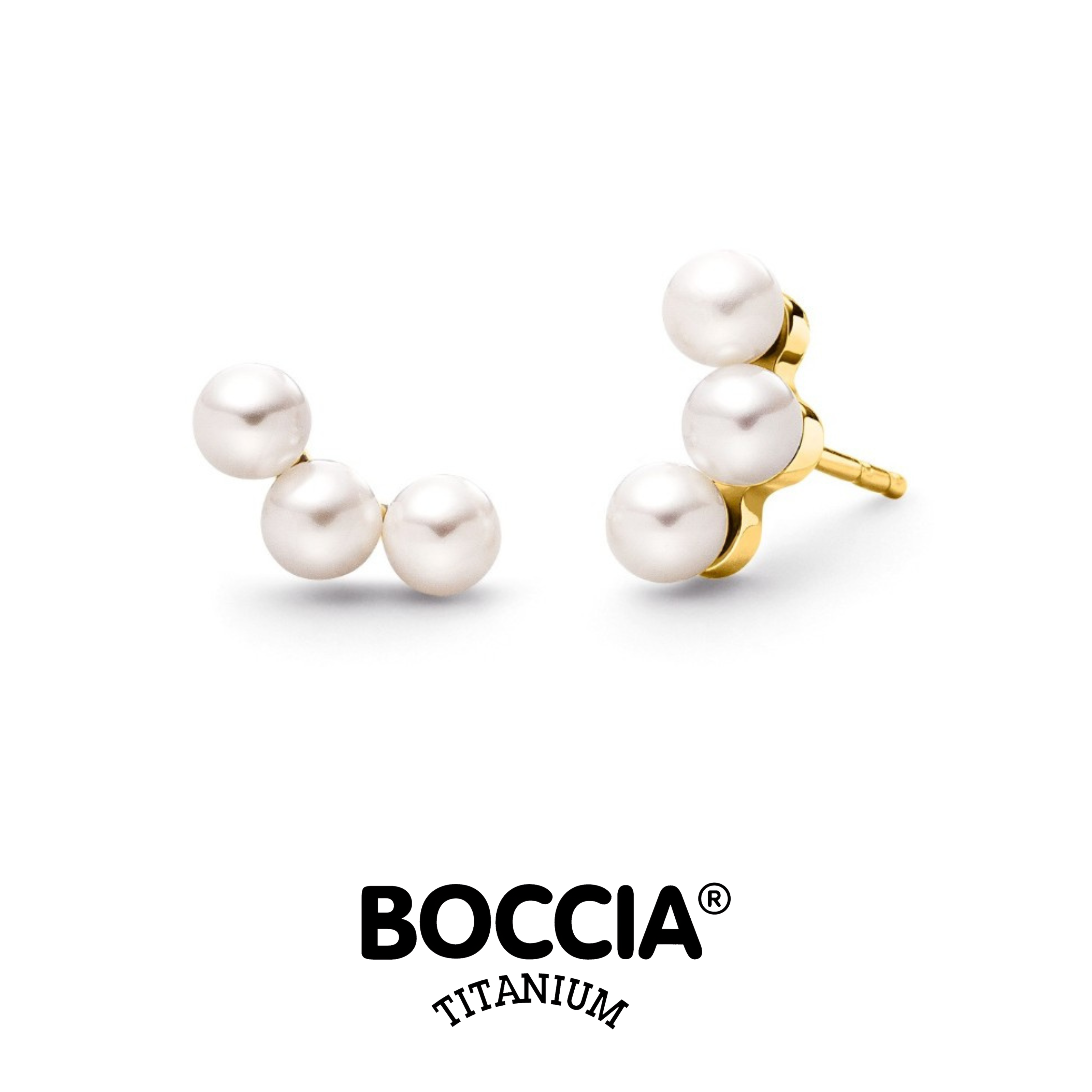 三顆珍珠,三種情感 —— 愛、信任、勇氣。Boccia Titanium 05107-02 耳環的設計靈感來自「情感的平衡」,如同香港女性在生活與工作中游刃有餘,這款耳環以三角排列象徵穩定與力量,而金色光澤則代表溫暖與光芒。