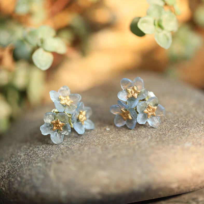 勿忘我三花耳釘 Forget Me Not Earrings - Triple Flower Post